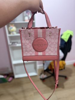 Coach Dempsey Tote 22 in Signature Jacquard with Stripe and Coach Patch in a pink color variant. $180Santa Ana, CA