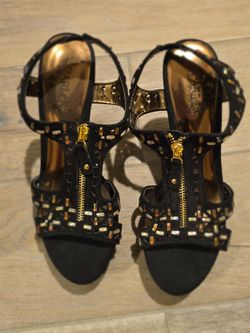Used Size 7.5 Carlos Santana black wedge sandals$10Quartz Hill, CA