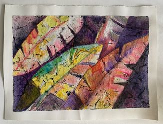 Japanese Rice Paper Painting Collage W/ Gold Leaf OOAK $50Hollywood, FL