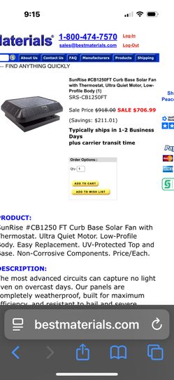 The Sun Rise Solar Powered Attic Fan$300Glmn Hot Spgs, CA