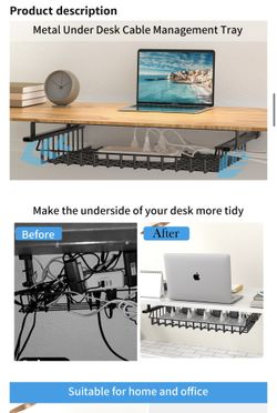 No Drilling Under Desk Cable Management Under Desk Storage Shelf Metal Under Desk Wire Pullable Drawer Plugs Management Under Table Cord Management Or$30Falls Church, VA