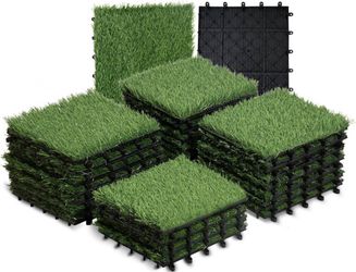 Outdoor Artificial Grass Tiles, 12 x 12 Inch Lawn Squares, Pack of 18, Self-Draining Artificial Grass Squares with Synthetic Grass Pads$75El Monte, CA