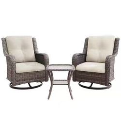 3-Piece Wicker Outdoor Rocking Chair Patio Swivel Chair Set with Grey Cushions and Table$199El Monte, CA