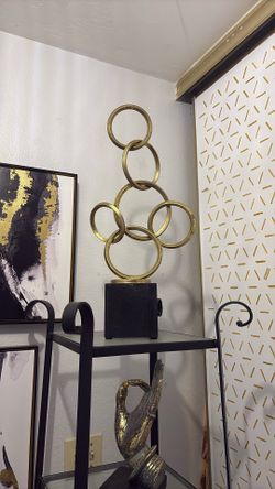 Gold Metal Abstract Interlocking Circles Sculpture on Square Base$45San Diego, CA
