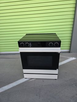 Samsung Bespoke 30-inch electric range featuring a modern design with a "White Glass$500Glendale, AZ