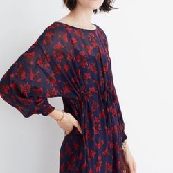 Madewell No.6 Vintage Rose Blue Red Silk Floral Printed Silk Magical Dress Sz 00$80Corona, CA
