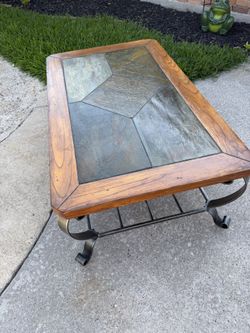 Raymour & Flanigan Two-Tier farm house Rustic Rectangular Coffee Table Tile Inlay Oak Border$60Friendswood, TX