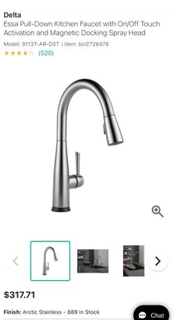 Delta Essa Single Handle Pull-Down Modern Design Kitchen Faucet with Touch2O Technology in Arctic Stainless. Model: 9113T-AR-DST$195Chagrin Falls, OH