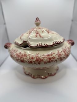Cracker Barrel Red Floral Porcelain Transferware Lidded Soup Tureen And Ladle$35St. Louis, MO