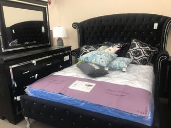 queen upholstered bed black velvet with rhinestones $699Palmdale, CA
