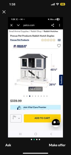 Duplex Rabbit Hutch 49.5"L x 26.75"W x 45.5"H (125 x 68 x 115.6 cm)$250Aurora, IL