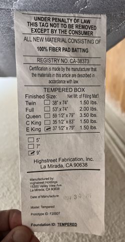 E King Califórnia bed 75”x79”$100Hollywood, CA