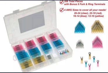 200+ Pieces Heat Shrink Electrical Wire Connectors Multiple boxes available. Brand new in sealed case -Multi pack set 206 pieces total; 200 heat s$12Tarpon Springs, FL