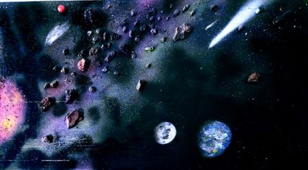 Space art painting with 3d parts on five foot wooden plank$120Menifee, CA