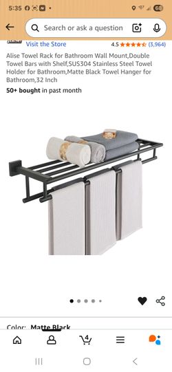 Alise Towel Rack for Bathroom Wall Mount,Double Towel Bars with Shelf,SUS304 Stainless Steel Towel Holder for Bathroom,Matte Black Towel Hanger $35Sun City, AZ