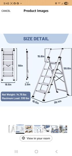 5 Step Ladder, Retractable Handgrip Folding Step Stool with Anti-Slip Wide Pedal, Aluminum Stool Ladders 5 Steps, 330lbs Safety Household Ladder$65Sun City, AZ