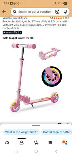 Scooter for Kids Ages 3+, 2 Wheels Kids Kick Scooter with Led Light Up & 3 Levels Adjustable, Lightweight Foldable for Boys&Girls$20Sun City, AZ