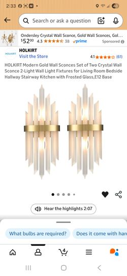 Modern Gold Wall Sconces Set of Two Crystal Wall Sconce 2-Light Wall Light Fixtures for Living Room Bedside Hallway Stairway Kitchen with Frosted $65Sun City, AZ