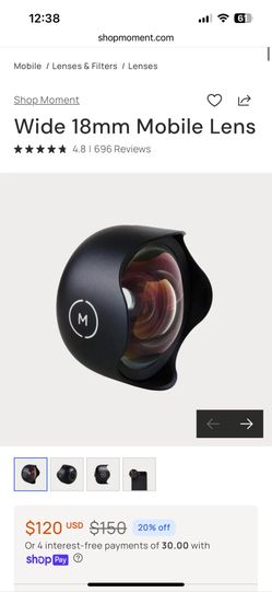 Moment Mobile Lenses iPhone 58mm Telephoto 14mm Wide$80Rowland Heights, CA