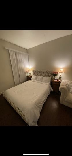 Full Or Queen Wood Bed Frame Upholstered With Strawberry Fabric, Upholstered Head Board, Tufted Head Board, Girly Bed Frame, Girly Head Board, Wood$100San Diego, CA