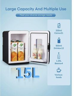 15L Mini Fridge, 21 Can Bedroom Refrigerator, Portable Cooler &Warmer, Beverage & Skincare, 110V/12V, Black$60Phoenix, AZ