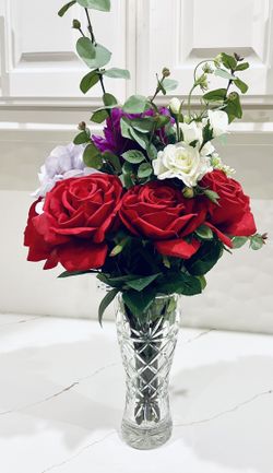 Crystal Vase With Bouquet Of Colorful Lifelike Flowers 💐 $35Plano, TX