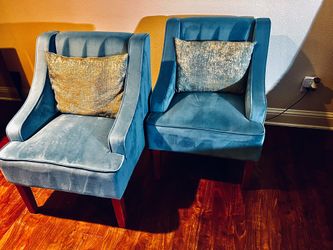 2 Velvet Teal Chair With Decorative Pillows $90The Colony, TX