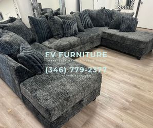 Brand New! Double Chaise Black Fabric Sectional! Sane Day Delivery$54Houston, TX