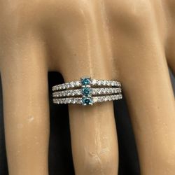 0.88 Ctw FANCY BLUE & WHITE DIAMOND THREE STONE MULTI ROW TRIPLE CHANNEL RING IN PLATINUM $450Saint Paul, MN