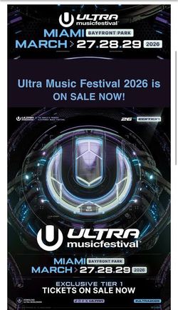 Ultra 2026 GA One Day Saturday 3/28$350North Miami Beach, FL
