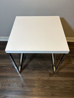 Small White Side Table - The Tabletop is made from engineered wood and plastic with a glossy PVC veneer that reflects the light with a Chrome-finished$25San Diego, CA