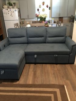 Sofá Cama Color Azul, Con USB y BAÚL $500Brawley, CA