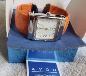 Womens Orange Faux Leather Silver Tone Cuff Hinge Bracelet Watch 6 inches