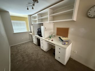 Home School 3 Desk Set Up With Overhead Shelves. $150Red Oak, TX