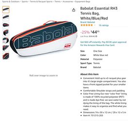 Babolat RH3 Tennis Bag, Holds 3 Full Size Racquets$45Cupertino, CA