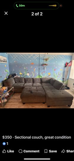 Large Sectional with Ottoman Gray Fabric - Great Condition $400Lake Worth, FL