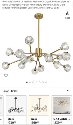 Weesalife Sputnik Chandeliers Modern K9 Crystal Pendant Light 15 Lights Contemporary Brass Mid Century Branches Ceiling Light Fixtures for Dining Room$200Trenton, NJ