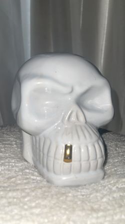 White ceramic skull with gold tooth decor$10Lodi, CA
