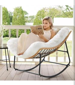 Outdoor Rocking Chair, Oversized Papasan with Padded Cushions, Rattan Wicker , white C-2$129Costa Mesa, CA