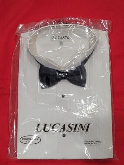 LUCASINI white tuxedo shirt w/ bow tie convertible cuffs 17 1/2 34/35 regular fit$25West Babylon, NY