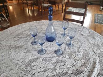 Vintage Blue Wine Decanter And Wine Glass Set$30Bolton, MA