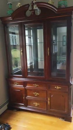 Bassett Cherry Wood China Cabinet / Hutch With Gold Accent Located In Fitchburg$150Fitchburg, MA