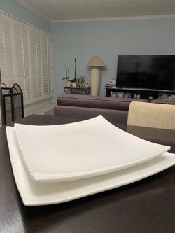 Sushi Party Buffett Platter White Ceramic Square Serving Plates with curved edges W14 inch & W16.5$8Los Angeles, CA