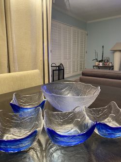 Aqua Watercolor Glass Dinner Serving Bowls Tagged shape Square Sets of 5 ( Large width 10inch x 1) ( Small width 5.75inch x 4) Dishwasher Safe$10Los Angeles, CA