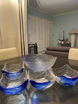 Aqua Watercolor Glass Dinner Serving Bowls Tagged shape Square Sets of 5 ( Large width 10inch x 1) ( Small width 5.75inch x 4) Dishwasher Safe$8Los Angeles, CA