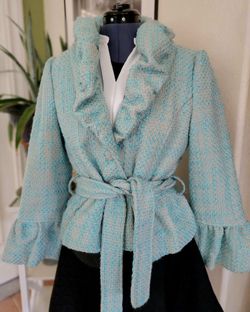 Just REDUCED Gorgeous Arden B Aqua Tweed Belted Jacket Bell Sleeve Size L$30Helotes, TX