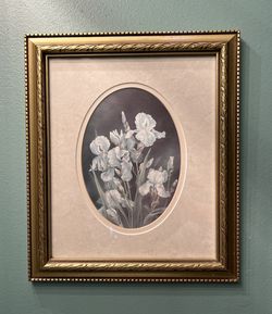 Vintage Print “White Iris” By Glynda Turley Matted W Gold Wooden Frame 10”x12”$40Woodstock, GA