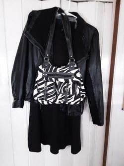 Faux Leather Jacket , Little Black Skater Style Dress + Animal Print Purse Outfit Bundle Lot Size Large Womens$35San Marcos, CA