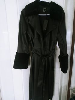 Faux Leather Trench Coat faux Fur And Suede Lining W Tag New Condition $35San Marcos, CA