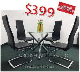 high end black and chrome round glass table with 4 chairs set new in display$399Pompano Beach, FL